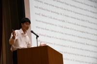 10月の茨城県英語スピーチコンテストで優勝し、12/7(土)に群馬県前橋市で行われる、「第17回関東甲信越地区高等学校英語スピーチコンテスト兼全国高等学校英語スピーチコンテスト関東甲信越ブロック大会」に出場することになった、浅野慎治さんの壮行会が行われました。ここのところの英語部の盛り上がりは素晴らしく、大会に出場したい選手、出場のレベルに十分達している選手がとても多いということです。この日は実際に本番を想定し、浅野さんには全校生徒の前でスピーチを披露してもらいました。テーマは現在話題の「AI(人工知能)の可否について」でした。AIになりきってスピーチをするという設定が興味深く、聞く側の生徒も、「内容」「英語」「態度」の3観点に着目して聞くことで、大いに刺激を受けたようです。