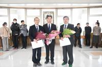 令和7年度の定期人事異動により、3名の先生方が定年退職を迎えられました。これまでの本校の発展に多大の貢献のあった方々ですが、その他にも県内の多くの学校で職務に専心されてきました。3名の先生方には、退職辞令とともに、感謝状が贈呈されました。