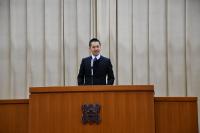 新入生には、「主体的に高校生活を送ることの大切さ」という視点で、①「自ら学び自ら考えよう」、②「多様なものの見方や考え方を尊重しよう」、③「自他のしあわせについて考えられる人間になってほしい」ということをお話ししました。