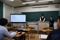1年生の「探究Ⅰ」において、茨城の魅力研究・発表が各教室で行われました。本校は県内各市町村の75の中学校から生徒が通学しています。この多様な生活環境そのものを教材にして生徒の多様性を育み視野を広げようと、1学年の「探究Ⅰ」は、「地域探究」に特化して調査・研究を行っています。今回は、各生徒が自分の住む市町村の魅力や課題を調査・報告するプレゼンを班単位で行った後に代表による全体プレゼンを行い、県内各市町村への理解を深めました。最後に、「①目的に対して分析・考察する技能」、「②発表の際の論理性と分かりやすさ」の2項目で相互評価できたのもよかったと思います。将来県内外、国内外の様々な場所で活躍するにも、先ずは地元を愛する気持ちは大切です。その意味からも貴重な機会となりました。