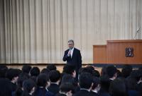 4月6日に「令和8年度新任式・始業式」が行われました。「新任式」では、私を含め11名が登壇し教頭先生から紹介されました。緑高生の真っ直ぐな眼差しと向き合い、緑岡高校の一員として力を尽くしていきたいとの思いを強くしました。「始業式」では、先入観を持たずに広い視野でしなやかにしたたかに学びを深めてほしい、不安を感じたときは身近な先生に遠慮せず相談してほしいと伝えました。進路部長は、主体的に学び進路の可能性を広げてほしいと生徒を励ましました。生徒指導部長は、自転車の交通ルールを確認し、友人への思いやりを持ち安心安全な学校にしていこうと呼びかけました。生徒も先生も緊張する新学期ですが、一日一日を大切に積み重ねていきたいと思います。
