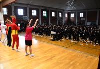 4月10日に、生徒会主催で対面式・新入生歓迎会・部活動紹介が行われました。吹奏楽部の演奏と2・3年生の拍手に迎えられ、1年生が体育館に入場しました。生徒会長が、「本会は、混迷の世界で自分らしく生きていくために、自主性を養い、品性の陶冶と校風の向上を目的とし、生徒のみなさんの学校生活をサポートします。」と生徒会発足宣言をしました。部活動紹介では、17の運動部と14の文化部が趣向を凝らした紹介でステージを盛り上げ、1年生の緊張した表情が和らいでいきました。新入生代表が、「伝統を受け継いでいきます。」と堂々と挨拶をして、閉会となりました。体育館に全学年が揃い、緑高生のパワーを存分に感じることができました。