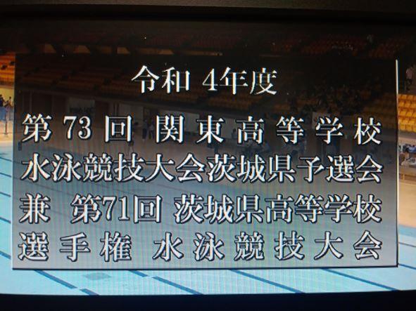 令和4年度第45回茨城県高等学校春季水泳競技大会が、山新スイミングアリーナメインプールで行われ、男子17名、女子3名がエントリーし、個人種目に男子24種目、女子6種目、リレー種目に3種目出場しました。プールで練習する時間が少ないなか、自己ベストを目標に一生懸命泳ぎました。